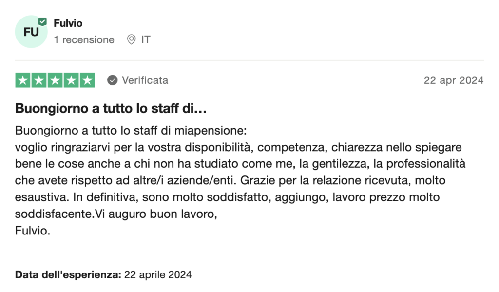MiaPensione è l’azienda di consulenza previdenziale che rilascia una relazione scritta contenente un calcolo pensionistico affidabile.