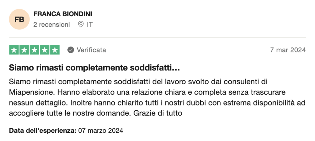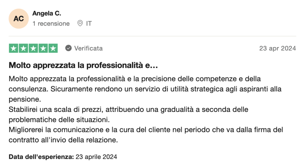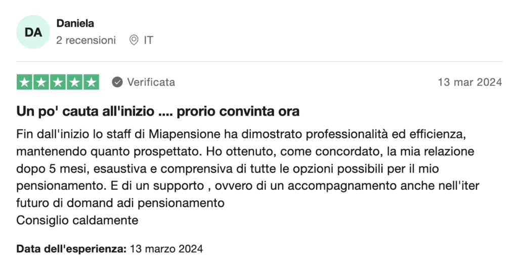 ✅ Ottenere risposte certe e scegliere il momento migliore per lasciare il mondo del lavoro senza dover incorrere in spiacevoli sorprese.